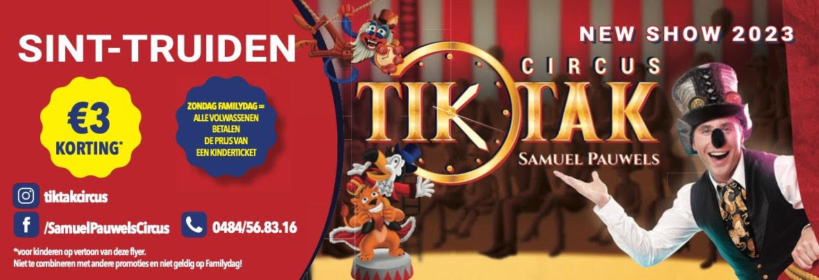 Ik ben Samuel Pauwels 34 jaar en circusdirecteur van het ‘Tik Tak circus’. De 7de generatie van een clowns familie met de Gentse roots die doorheen de wereld heeft gereisd als ‘Les Pauwels. Ik ben ook fier erkend te zijn door de Vlaamse Gemeenschap en door het Circus centrum. Het nieuwe project 2023 is een creatieve mengeling van circus en theater , met hedendaagse geluids-en lichteffecten, internationale artiesten en een moderne enscenering waarbij Clown Tik Tak samen met zijn vrienden een rode draad vormen. Drie prachtige mascottes van natuurlijke grootte zullen hen begeleiden doorheen het programma, met de gekste avonturen die men zich kan indenken. U ziet, wij brengen een totaal nieuw en enig spektakel.
