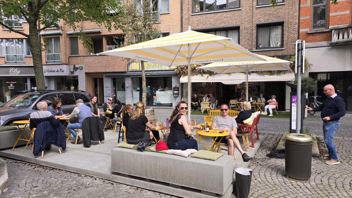 Alweer de eerste zon, volle terrasjes en meteen ook bijen en wespen, waarvan deze familie meteen een stek zocht op een vrij ongewone plaats in onze stad: de gevel van de Sinte Matte.