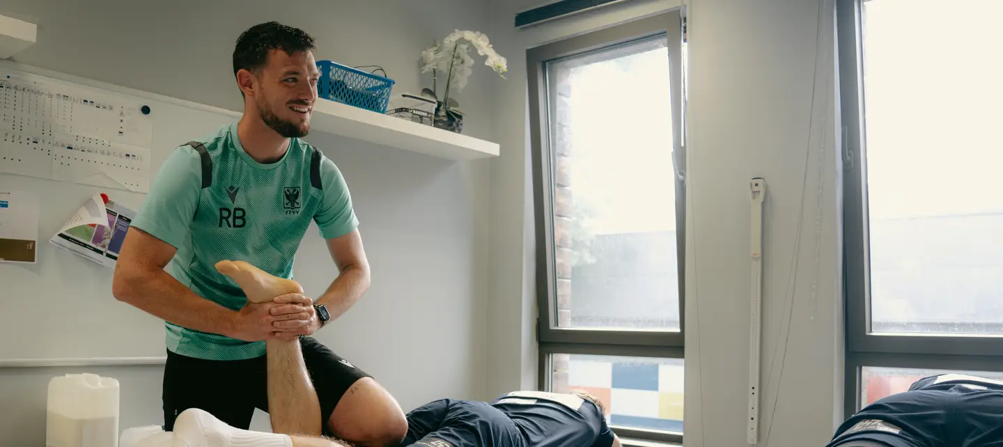 “Ik was allereerst jeugdspeler bij STVV, van de U14 tot de U19. In 2020 ging ik aan de slag als kinesist bij de 2de ploeg. Het seizoen daarop ben ik doorgestoten naar de A-kern, waar ik nu twee seizoenen hoofdkiné ben.”