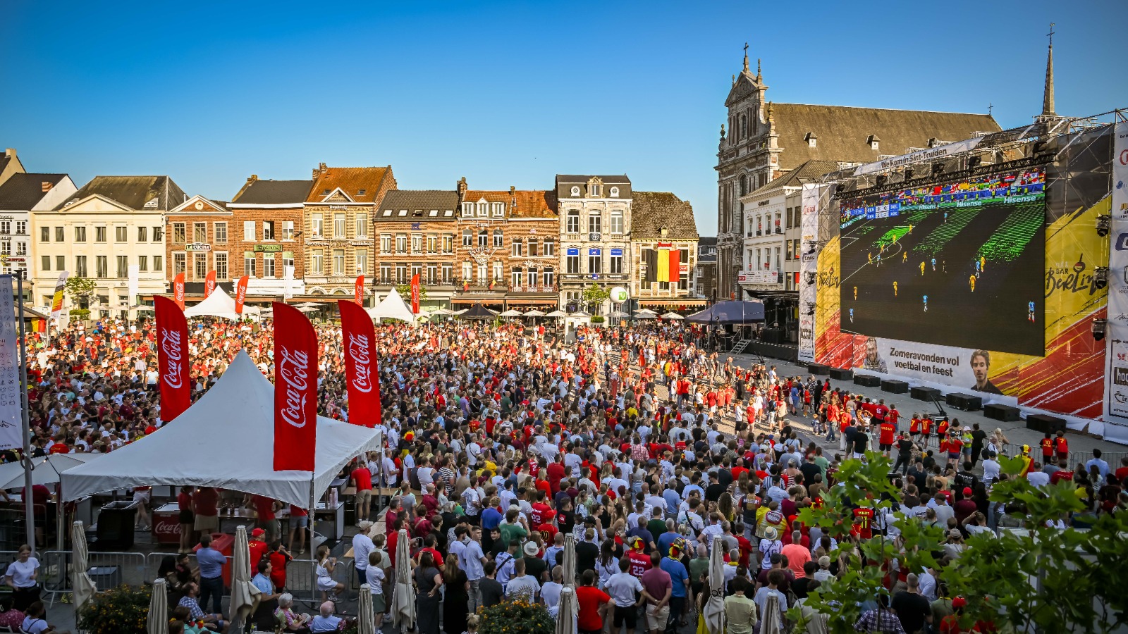 De Rode Duivels zijn geplaatst voor de volgende ronde. Dat wil zeggen dat ze nu maandag tegen Frankrijk spelen om 18 uur. Deze wedstrijd staat helemaal in het teken van STVV: “De Grote Markt kleurt geel-blauw. Voor de match België – Frankrijk spreken enkele STVV-spelers de markt toe vanop het podium. En we trakteren al onze abonnees op vertoon van een digitale voucher – een gratis consumptie!