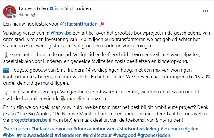 Nieuw stadsdeel met 14 verdiepingen hoge woontoren achter het station 02/09/2024 Vandaag pakte bouwheer Laurens Gilen in HBVL uit met grootse plannen voor het nieuw te bouwen stadsdeel achter het station.