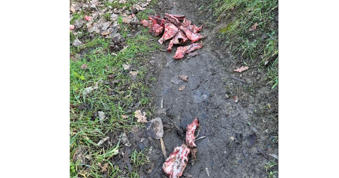 Gisteren is er in het overstromingsgebied Bernissem een grote hoeveelheid vleesafval verspreid gestort. Wie heeft er zijn bord niet leeggegeten?