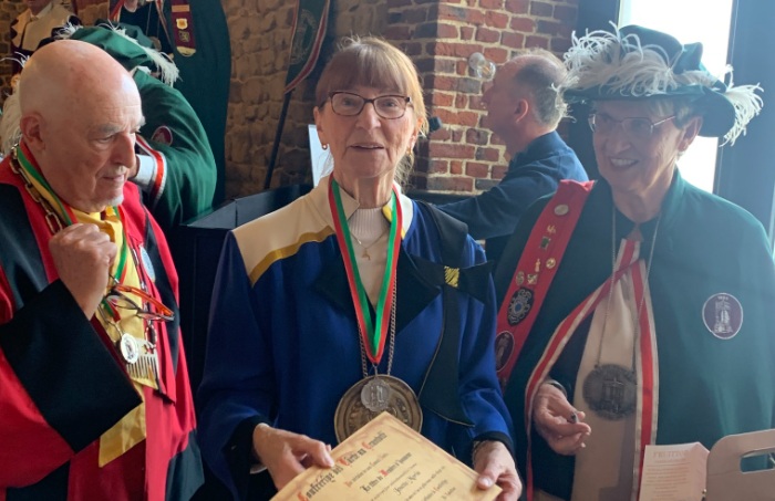 De Keizerlijke Commanderie van de Edele Haspengouwse Fruyteniers was te gast op het kapittelbanket van de @Confrérie dèl Tarte au Crastofé (Ittre) , waar uiteraard de lokale hartige kaastaart centraal stond. Een speciaal moment was de intronisatie van maarschalk Josette Moria door het plaatselijke genootschap. Intussen legden de leden van de Commanderie mooie contacten; werd tussendoor ons fruit gepromoot en werden de toeristische gidsen van onze stad aan de man en vrouw gebracht. In augustus is de Commanderie trouwens uitgenodigd om in Tubeke een stand te houden en daar de rijkdom van onze Haspengouwse producten in de kijker te zetten.